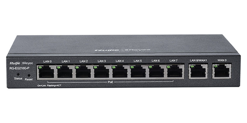 Description Ruijie Reyee EG210G-P 10-Port Gigabit Cloud Managed Router, 8 x PoE/POE+ Ports 70W Power Budget, up to 4 WANs, 200 concurrent users, 600Mbps